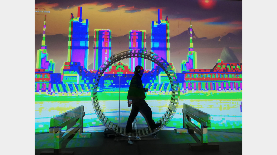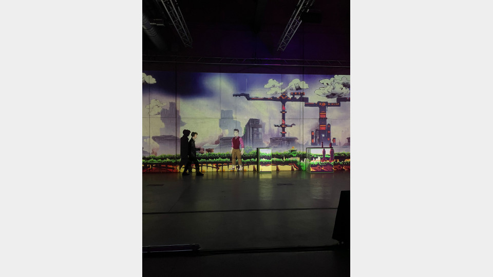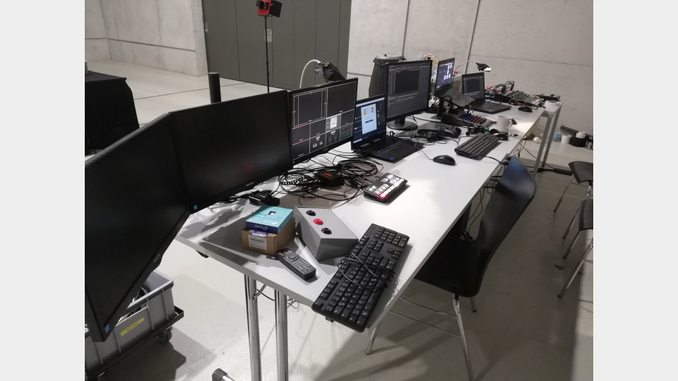 Human:Level is an experiment combining performance, theater, and computer gaming. The game character is replaced by an actor. The mixing of real and projected space creates an augmented reality on the stage as well as a game level on the computer monitor of the player. The question arises as to how a computer, whether as a medium or as content, changes decisions between people. The person being played becomes the victim of the players, who become perpetrators. The story addresses our actions in climate change and our personal role in it.