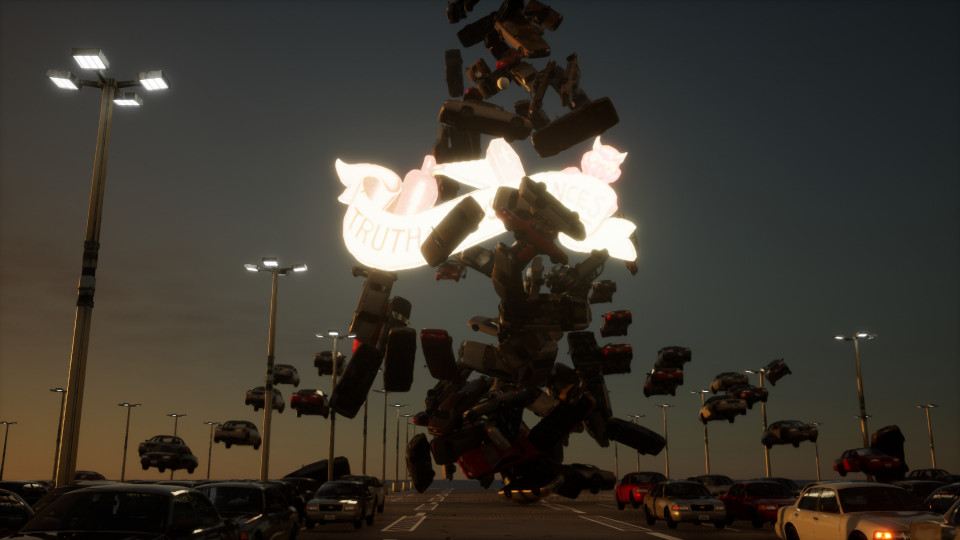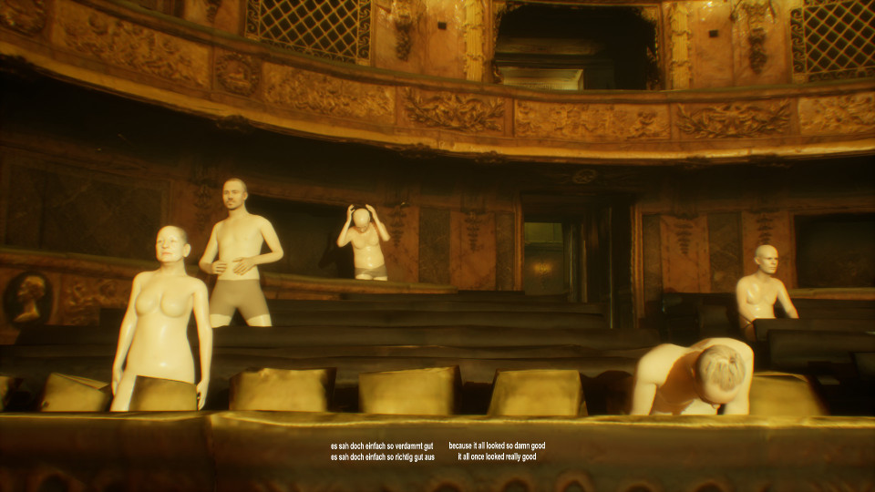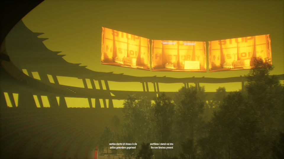 An interactive, first-person music theater video game essay by Michael v. zur Mühlen based on the opera "opera opera! revenants&revolutions" with music by Ole Hübner and texts by Thomas Köck. Far in the future and after a severe catastrophe, a choir of last people with partial amnesia is in conversation with itself and a cyborg. It is about collective agency, future prognoses, the collapse of the public sphere as we know it and emerging utopias.